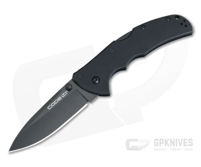 The Cold Steel Code 4 Spear Point CPM S35VN is a full-size folding knife built for everyday carry and serious use. The handles are made from Black 6061 Aluminum for lightweight durability and slim, discreet carry. The hollow ground spear point blade offers a high level of utilitarian slicing performance while maintaining plenty of strength for heavier tasks. The Tri-Ad back lock, dual thumb studs and clips make the Code 4 fully ambidextrous and a perfect choice for those looking for a reliable cutting tool for hard use every day of the week. This version comes with a black DLC coated blade and black handles.