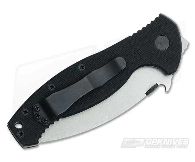The Emerson SARK is an Ernest Emerson designed Search and Rescue Knife. It features a chisel ground hawkbill styled stonewashed partially serrated blade with rounded tip, ideal for rescue situations. The blade can be opened in an instant with use of the patented Emerson waved opener. You can also use the ambidextrous thumb disc to open the blade in non-emergency situations. Grippy black G10 sits over titanium liners to make up the ergonomic handle. One of the liners forms a reliable liner lock which also allows for one-handed closing. Standoff construction forms the backbone of the blade holding the handles together. A black coated stainless steel pocket clip is attached for right-handed pocket or gear carry. Brand new directly from Emerson Knives.