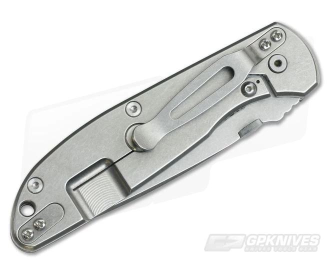 The Blade: At just over 3.5″ the Spanto style blade offers plenty of cutting edge while the high height saber grind and reinforced tip still retain plenty of toughness. There is a small section of jimping on the spine for traction and a titanium thumb disk maintains a low profile while still providing fast, ambidextrous deployment. A rugged and attractive Stonewashed finish looks great on this hard working blade and helps hide wear from use. The blade is made from CPM 20CV for some of the highest levels of edge retention and corrosion resistance while still retaining good toughness and relative ease of sharpening.
