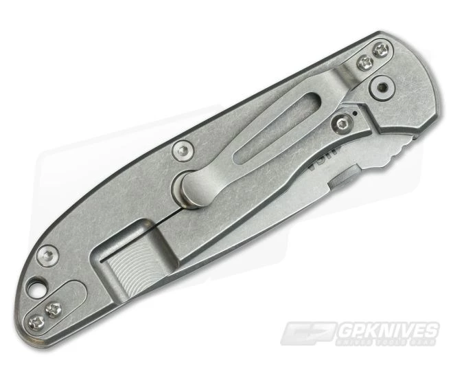 The Blade: At just over 3.5″ the Spear Point style blade offers plenty of cutting edge while the high height saber grind has plenty of toughness and the full length swedge provides excellent piercing performance. There is a small section of jimping on the spine for traction and a titanium thumb disk maintains a low profile while still providing fast, ambidextrous deployment. A rugged and attractive Stonewash finish looks great on this hard working blade and helps hide wear from use. The blade is made from CPM 20CV for some of the highest levels of edge retention and corrosion resistance while still retaining good toughness and relative ease of sharpening.