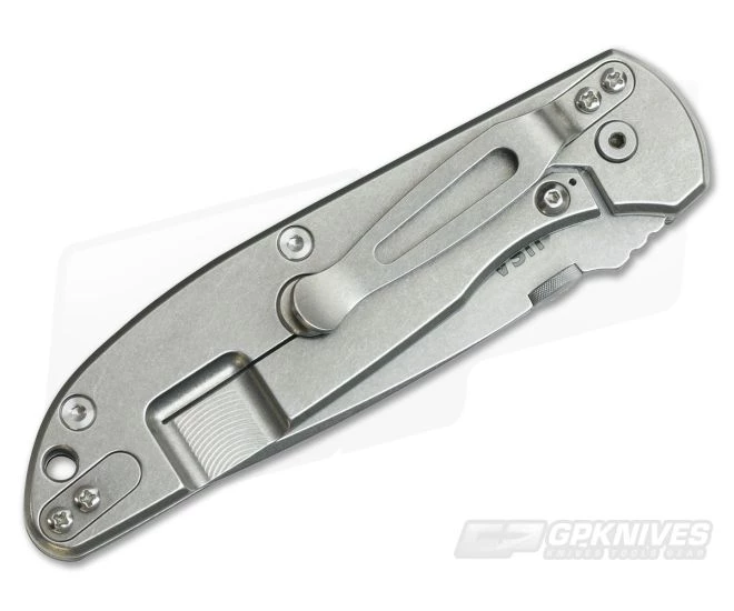 The Blade: At just over 3.5″ the Spear Point style blade offers plenty of cutting edge while the high height saber grind has plenty of toughness and the full length swedge provides excellent piercing performance. There is a small section of jimping on the spine for traction and a titanium thumb disk maintains a low profile while still providing fast, ambidextrous deployment. A rugged and attractive Stonewashed finish looks great on this hard working blade and helps hide wear from use. The blade is made from CPM 20CV for some of the highest levels of edge retention and corrosion resistance while still retaining good toughness and relative ease of sharpening.
