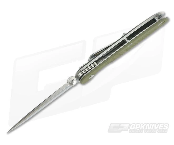 The Handle: On the Firetac you will find the familiar Hinderer construction: Titanium frame lock, open back construction with barrel spacers and a thin titanium liner supporting a 3D Textured OD Green G10 front scale. The Firetac is more streamline than other Hinderer models thanks to a lack of jimping on the handles which makes from a more comfortable grip and smoother transition in and out of the pocket as well as into different grip while in use. The frame lock is equipped with a lock face insert for smooth and reliable operation. The Firetac carries via a reversible, right-hand only, Hinderer Style titanium pocket clip.