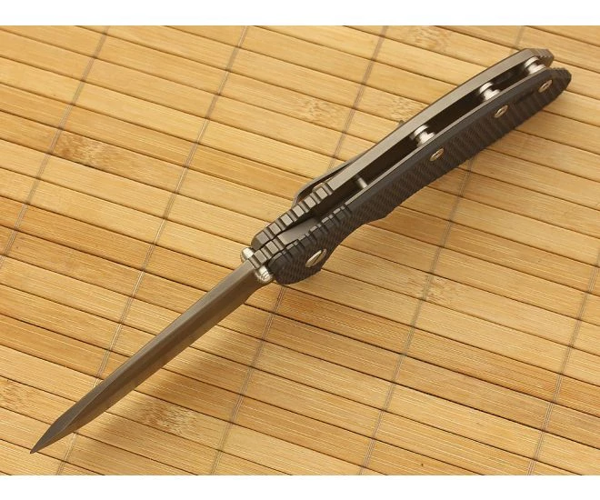 The Handle: This knife has a Black G10 front scale with an Anthracite DLC titanium liner lying beneath. The rear side is solid CNC machined DLC titanium with hefty jimping and a frame lock. Hinderer’s famous lock bar stabilizer or LBS is present, and a reversible DLC tip up or down carry clip/filler tab is attached. The XM-24 has open spine construction via barrel spacers for easy cleaning/maintenance.