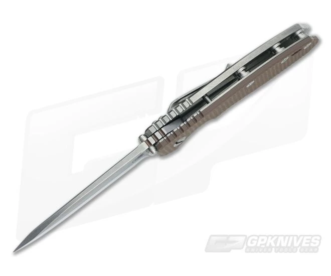 The Handle: This knife has a flat dark earth G10 front scale, with a titanium liner lying beneath. The rear side is solid CNC machined titanium with hefty jimping and a frame lock. Hinderer’s famous lock bar stabilizer or LBS is present, and a reversible tip up or down carry clip is attached. The XM-24 has open spine construction via barrel spacers and will provide years of guilt free use thanks to its fully tumbled frame.