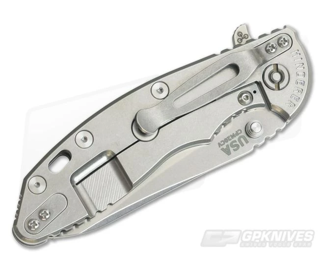 Handle: Full titanium frame lock and liner have a matching Stonewash Finish that is rugged and hides wear well while still having a handsome, bright finish. Satin Hardware and standoffs create one solid package while 3D texturing on the G10 scale coupled with jimping all around create a solid grip. There is also a bit of a choil to choke up on the blade for more detailed cutting tasks as well. This Hinderer XM-18 includes the famous Hinderer Lockbar Stabilizer and two-position titanium clip and insert for tip up or down right hand carry.