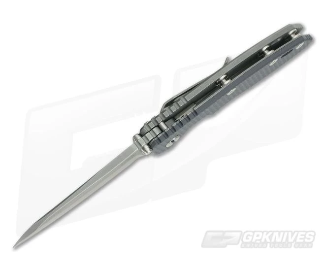 Handle: Full titanium frame lock and liner have a matching Working Finish that is rugged and hides wear well while still having a handsome appeal. Satin Hardware and standoffs create one solid package while 3D texturing on the G10 scale coupled with jimping all around create a solid grip. There is also a bit of a choil to choke up on the blade for more detailed cutting tasks as well. This Hinderer XM-18 includes the famous Hinderer Lockbar Stabilizer and two-position titanium clip and insert for tip up or down right hand carry.