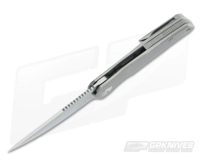 A devastating 3.75 inch persian-styled blade rides on caged bearings and is crazy sharp. Premium S35VN has a two-tone satin/tumbled finish with an extensive thumb ramp for getting a grip on this beast. It features an integral flipper with light notching for flawless action every time.