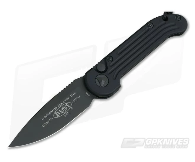 The L.U.D.T. (Large Underwater Demolition Team) out the side automatic knife model from Microtech has been a favorite among Spec Ops and first responders for nearly 20 years. This Tactical version features a black coated, plain edge, drop point blade of Elmax steel and a grooved black aircraft grade aluminum handle with blacked out hardware.