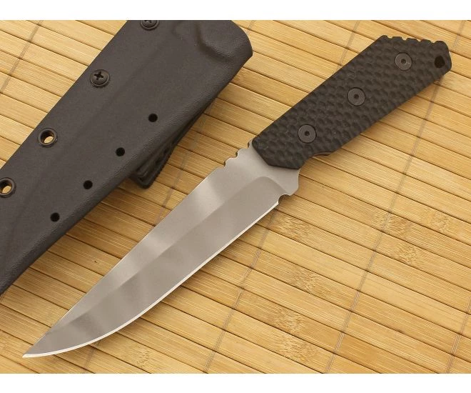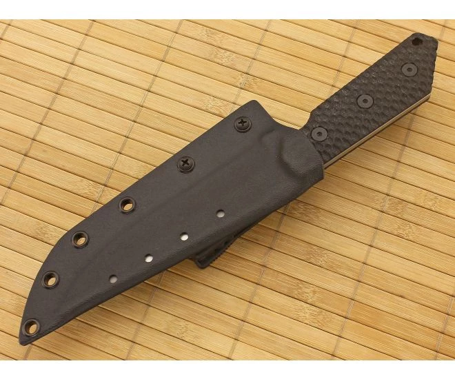 The Strider MK1C is a medium fixed blade knife with a handle design based off the MK1 series. The long drop point blade is hollow ground and razor sharp. This ready for action knife has a cool Ghost Stripe blade finish and tough full tang construction that wont let you down when the going gets rough. Deep jimping provides traction for the thumb in both reverse and forward grips. Bolt-on G10 handle scales are attached with three Torx screws and have Strider’s Gunner Grip texture. Handle also has a lanyard hole drilled through the tang. Includes Kydex sheath with an attached large Tek-Lok. Brand new direct from Strider Knives.
