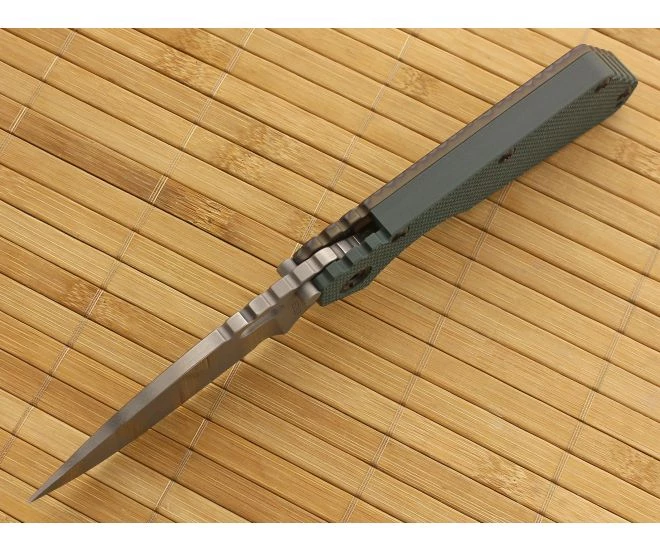 The Strider Knives SMF is an oversized, Special Mission overbuilt tactical folder capable of tackling the toughest tasks. Ready for heavy and hard use, this SMF features a spear point styled blade ideal for the variety of field uses that may arise. The frontside of the handle is lego flat hunter green G10 with integral backspacer and flame anodized titanium backside.