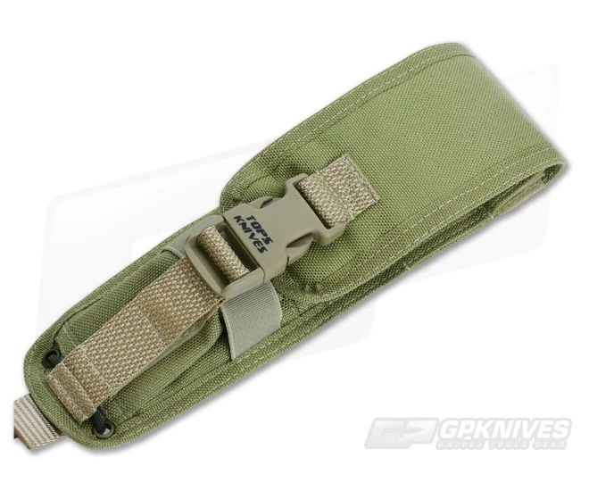 The TOPS C.U.B. Survival Knife is a design by Reuben Bolieu, a photographer, writer, martial arts trainer and survival instructor for Randall’s Adventures and Training (RAT). Well-versed in primitive survival techniques, Reuben wanted to create a lightweight companion to the machete or axe for utility field use. The TOPS C.U.B. or Compact Utility Blade is a combination of two of his favorite knife styles, the Finnish Puukko and Kephart style knife. The slim 1/8″ thick 1095 tool steel tang provides the base of the knife forming a deep bellied blade. The Scandinavian Grind provides for superior wood carving and slicing abilities. Natural tan micarta handles with bow divot on both sides are attaches to the tang with Chicago screws, making them easy to remove in the field if necessary. Includes a MOLLE compatible tan nylon sheath with front pouch and snap closure. A small survival kit is also included and features a Razor Blade, 3 Barrel Fire Starter, P-38 Can Opener, Steel Snap Link, Fresnal Lens, HD Rubber Band, Sail Needle, Safety Pins, Fishing Line (25′), 2 Fish Hooks, Liquid Filled Button Compass, Orange Marking Tape (12′) and Acrylic Signal Mirror.